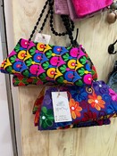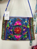 Bolso de mano bordado, artículo de comercio justo.