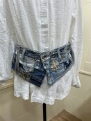 Cinturón sobre camisa, hecho a mano, decorado con cadena de metal, bisutería de cristal. Modelo único e irrepetible. Talla M.