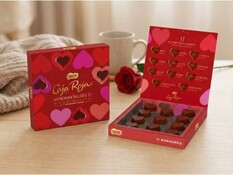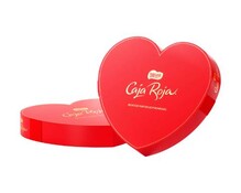 Presenta una dulce colección de 150 g de autentico chocolate Nestlé con 17 bombones de chocolate con leche relleno de cremoso con avellanas en forma de corazón, de la conocidísima marca caja roja. Se trata de un diseño limitado para San Valentín, como motivos románticos. La caja, en forma de corazón y con motivos románticos, se envía envuelta en papel seda, decorada con lazos. Incluye una tarjeta recordatoria con el mensaje que tu quieras.