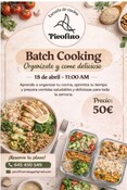 Taller de Batch Cooking: Organízate y Come Delicioso. ¿Te gustaría comer casero toda la semana sin pasar horas en la cocina cada día?. En este taller aprenderás a organizar tu menú. 18 de abril a las 11:00h.