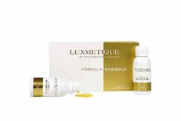 Luxmetique Fórmula Hyagold 15 viales bebibles, es un nutricosmético bebible con la mayor concentración de ácido hialurónico de alta pureza, máxima calidad y a diferentes pesos moleculares para el restablecimiento de los niveles de ácido hialurónico en las diferentes capas de la piel. Luxmetique Formula Hyagold 15 Viales de 30 ml mejora la hidratación de la piel y reduce la pérdida transepidérmica de agua. Tratamiento de rejuvenecimiento. Activación e iluminación de la piel. Atenuación arrugas y signos de expresión de la piel. Mejora de bolsas y ojeras. Protección de las células frente al daño oxidativo. Mejora en cicatrización y curación de heridas. Tomar un vial bebible al día preferiblemente en ayunas.