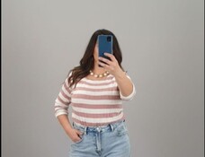Este conjunto en beige consta de pantalón de cuadros en rosa palo, una rebeca con terminaciones en volantes y un bolso a juego. Talla única que abarca desde la 38 a la 44.